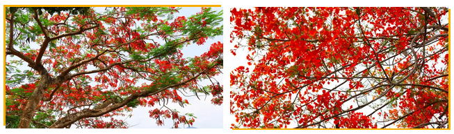凤凰木,别名金凤花、红花楹树、火树、洋楹等。凤凰木因鲜红或橙色的花朵搭配鲜绿色的羽状复叶,被誉为世界上色彩最鲜艳的树木之一。